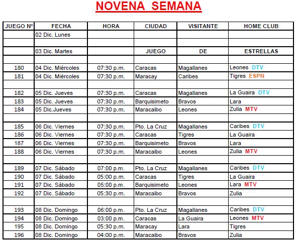 Este es el calendario de Beisbol Profesional Venezolano que incluyen todas las transmisiones de beisbol de la campaña 2013-2014.